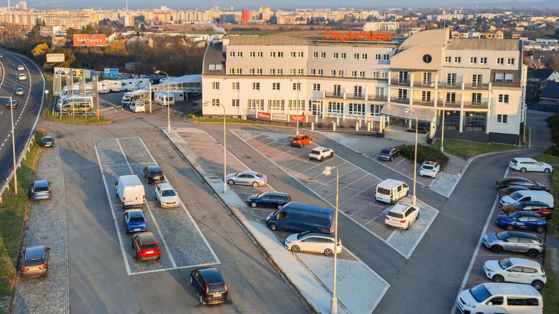 Možnost parkování pro osobní vozy i autobusyHotelové parkoviště se nachází přímo před hlavním vchodem. Jedná se o 45 parkovacích míst pro osobní automobily a 6 parkovacích míst pro autobusy. Všechna parkovací místa jsou zabezpečena závorou a monitorována kamerovým systémem na vjezdu a výjezdu. Pro náročné klienty je k dispozici 7 garážévých stání.